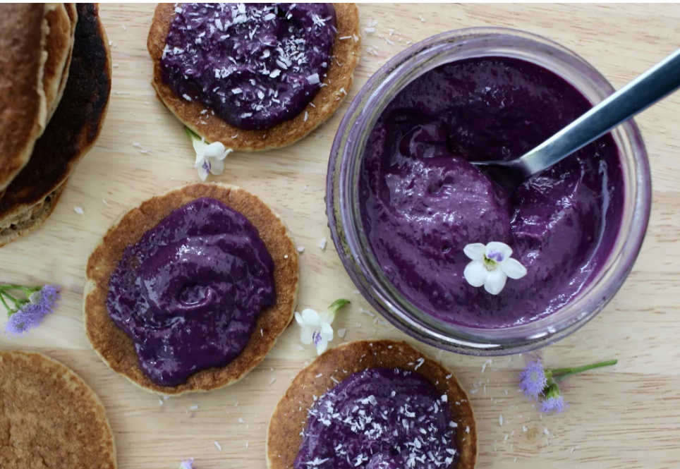 Le beurre de myrtilles est végan, naturellement sans gluten et sans lactose.